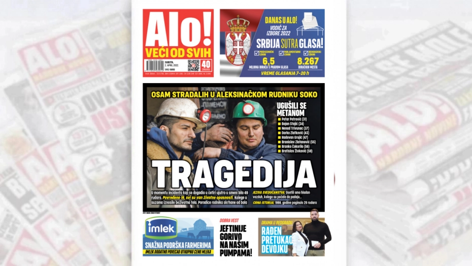 UŽAS U ALEKSINAČKOM RUDNIKU SOKO Osam rudara poginulo od posledica gušenja metanom