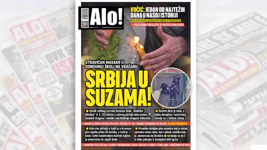 - Učenik sedmog razreda Osnovne škole „Vladislav Ribnikar“ K.K. (13) hicima iz očevog pištolja ubio osmoro školskih drugova i radnika obezbeđenja Dragana Vlahovića Alo.rs