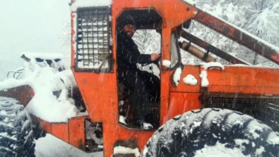 On se fotografisao u svešteničkoj mantiji u traktoru i na šaljiv način ukazao na sneg u ovom planinskom selu oko 45 kilometara udaljenom od Teslića.