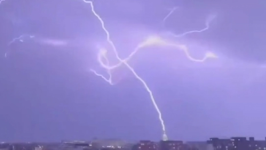 Senator Jute Majk Li je podelio video snimak udara munje na Kapitolu, napisavši: „Oseća se kao predznak. Šta nam to govori?"