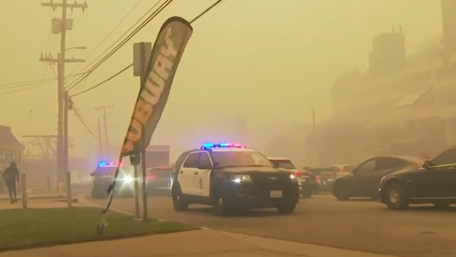 Pre izbijanja požara Nacionalna meteorološka služba izdala je najviši stepen upozorenja na ekstremne uslove tokom požara za veći deo okruga Los Anđelesa od utorka do četvrtka, predviđajući udare vetra.