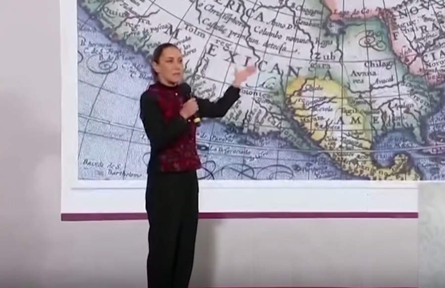 Ona je na redovnoj konferenciji za štampu, stojeći kraj mape, podruglivo predložila da Severna Amerika bude preimenovana u "Meksičku Ameriku", jer se ona tako zvala u jednom dokumentu iz 1814. godine, koji je preteča sadašnjeg Ustava Meksika.