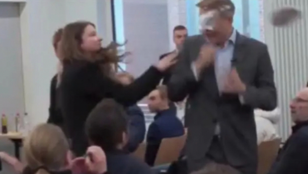 NAPADNUT LIDER FDP-A! Žena mu nabila "tortu" u lice, odmah su je savladali (VIDEO)