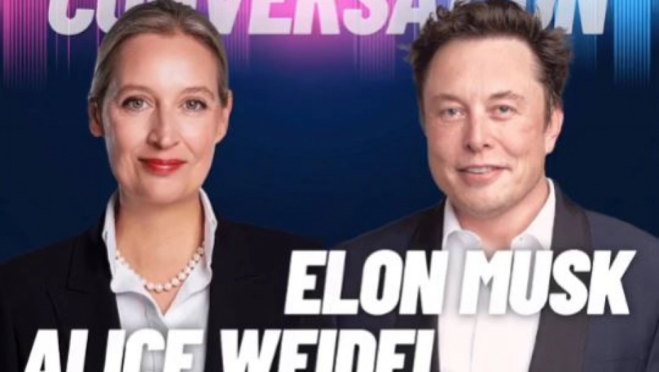 Američki milijarder, najbogatiji čovek na svetu, Ilon Mask, otišao je korak dalje u podršci desničarskoj Alternativi za Nemačku (AfD), razgovarajući na engleskom, uživo, sa koliderkom ove stranke, Alis Vajdel, čitava 74 minuta o energetici, Hitleru, Marsu, ali i smislu života. Mask je ponovio svoju tvrdnju da "samo AfD može spasiti Nemačku".