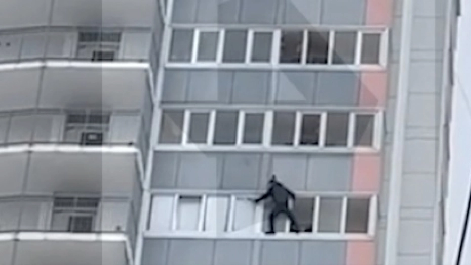 REN TV je objavio snimak incidentima. Na njima se vidi čovek kako se penje po fasadi višespratnice i udara čekićem po prozorima.