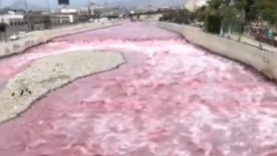 Na društvenim mrežama su osvanuli snimci i fotografije reke Rimac koja protiče kroz Peru, a koja je poprimila uznemirujuću nijansu crvene.