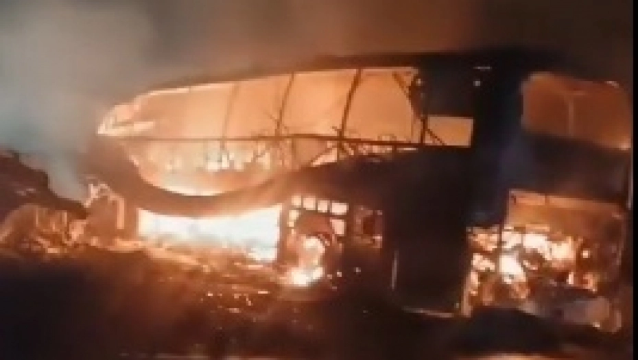 VATRA PROGUTALA AUTOBUS, NA DESETINE MRTVIH Stravične scene sa mesta saobraćajne nesreće (FOTO/VIDEO)