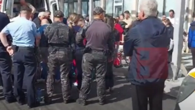 Na snimcima, koje je objavila agencija MIA, vidi se dolazak ambulantnih vozila sa povređenima. U pozadini su čuli leleci i krici roditelja zabrinutih za svoje najbliže. Na jednom snimku, žena u suzama sedi ispred bolnice, držeći se za glavu.