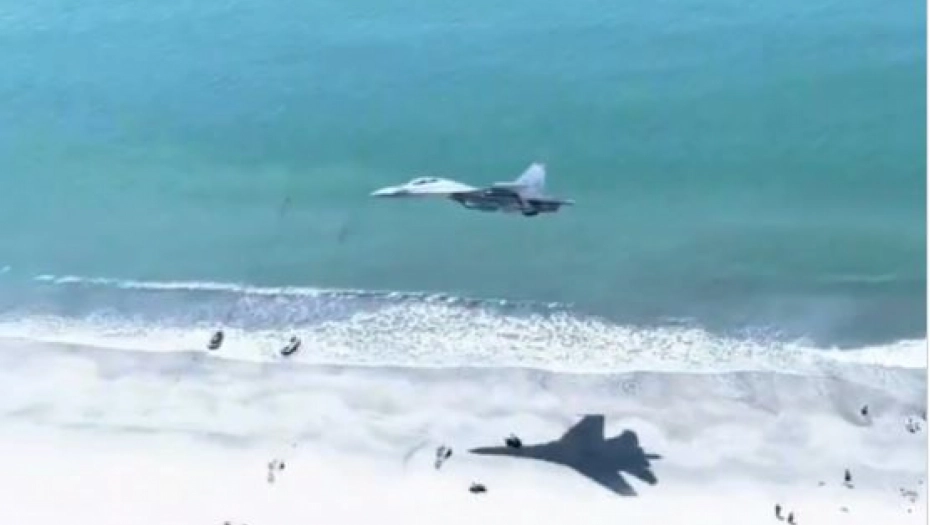 SNIMAK ZAPALIO MREŽE Kineski borbeni avion leteo tik iznad plaže, pogledajte šta je izveo pilot (VIDEO)
