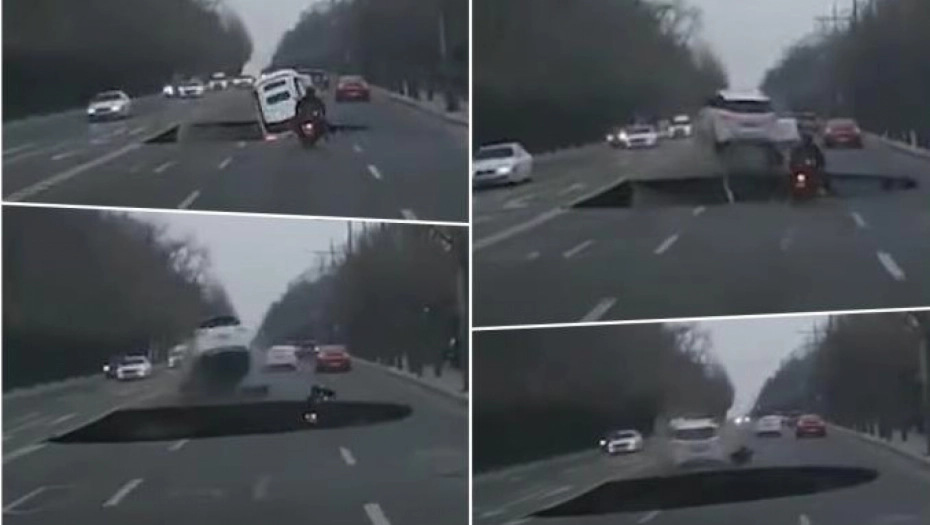 HOROR! OTVORILA SE RUPA I "PROGUTALA" MOTOCIKLISTU! Žena za dlaku izbegla tragediju, rupa duboka 20 METARA! (FOTO, VIDEO)