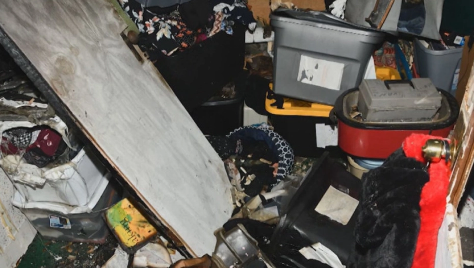 Fotografije iz unutrašnjosti kuće, koje je policija objavila daju mračnu sliku života iza zatvorenih vrata u ovoj kući: sobe su pretrpane stvarima, zidovi prekriveni dimom i uništeni od vatre, i vrata koja imaju samo brave spolja.