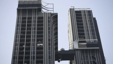 Ona je rekla da je njen suprug vežbao na 52. spratu jednog od tri stambena bloka - od kojih je svaki povezan vazdušnim mostom - kada se zemljotres dogodio.