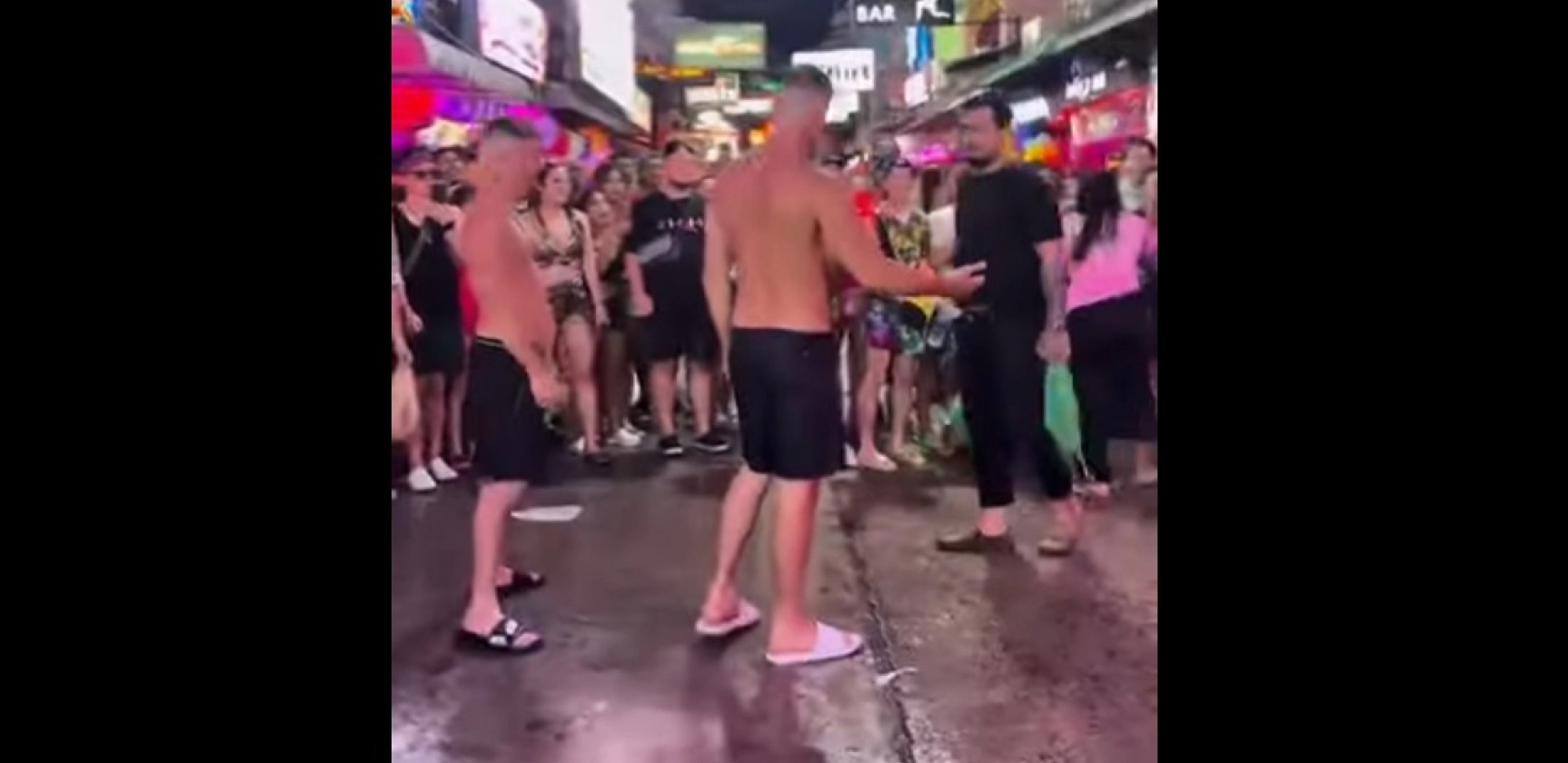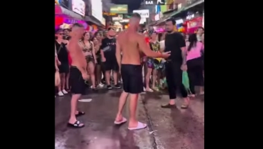 Na snimku, koji je nastao na proslavi tajlandske Nove godine, vidi se kako se pijani turista približava izbacivaču ispred bara u Pataji.