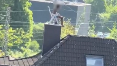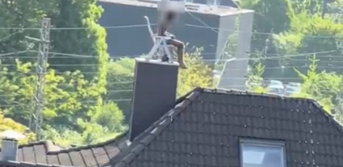 Na krovu je proveo skoro sat i po, a na kraju je čak uzeo stolicu sa jednog balkona, stavio je na dimnjak i udobno se smestio. Prizor su pratili mnogi ljudi u Bohumu.