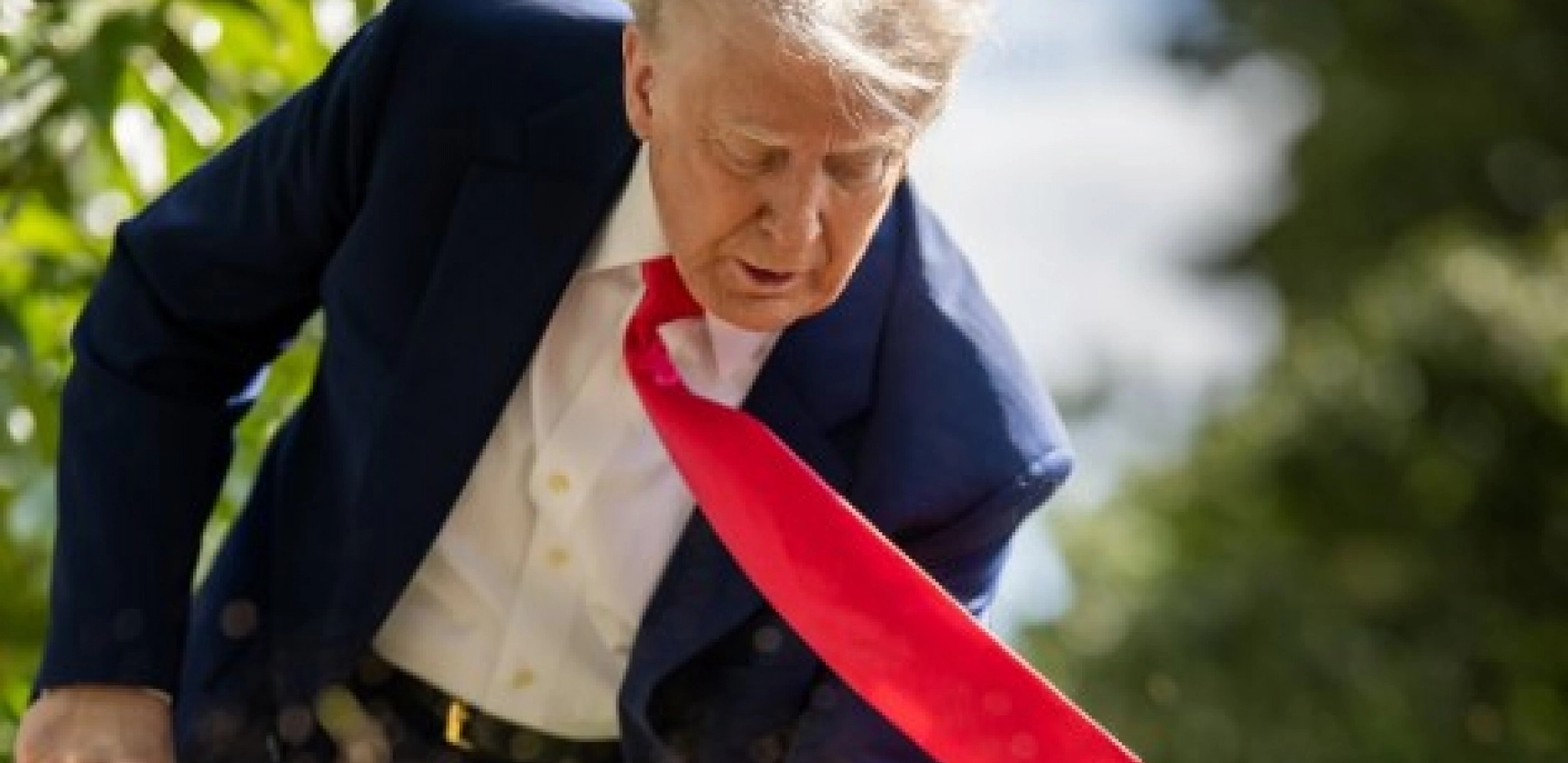 Na slici Tramp kao papa sedi na pozlaćenom tronu, obučen u belu mantiju, sa mitrom na glavi i velikim zlatnim raspećem na grudima. Kao u činu blagosiljanja, kažiprst desne ruke podigao je nagore, a na domalom prstu nosi nešto nalik ribarskom prstenu - papskom prstenu.