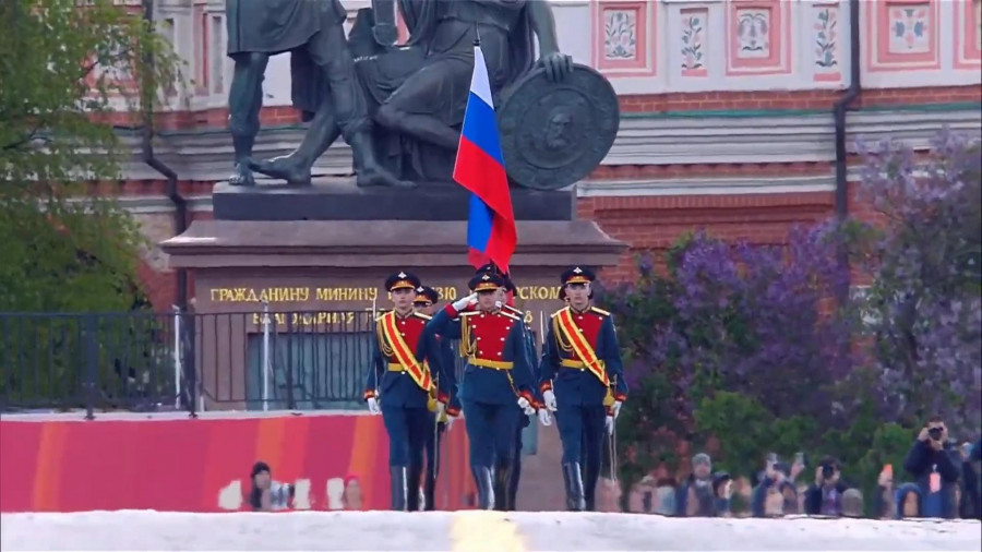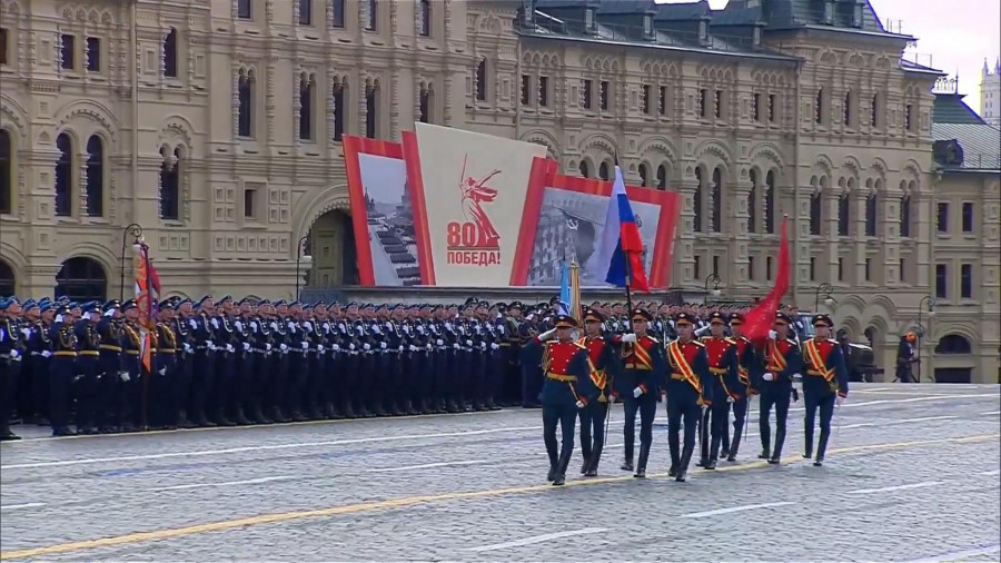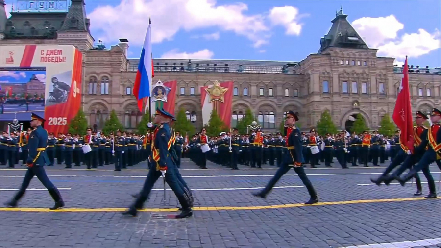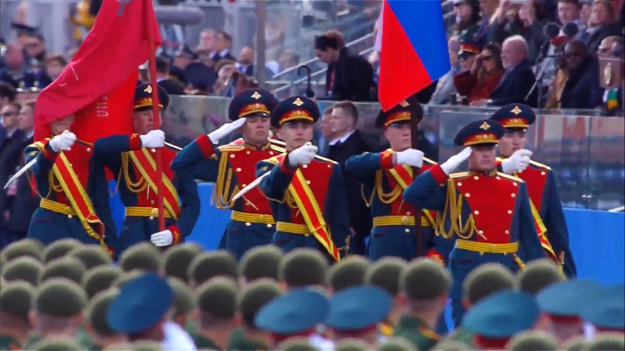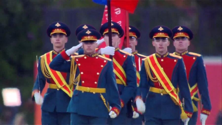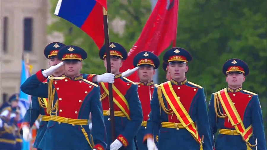 Parada je počela iznošenjem na Crveni trg zastave Rusije i Zastave pobede, uz melodiju pesme "Sveti rat".