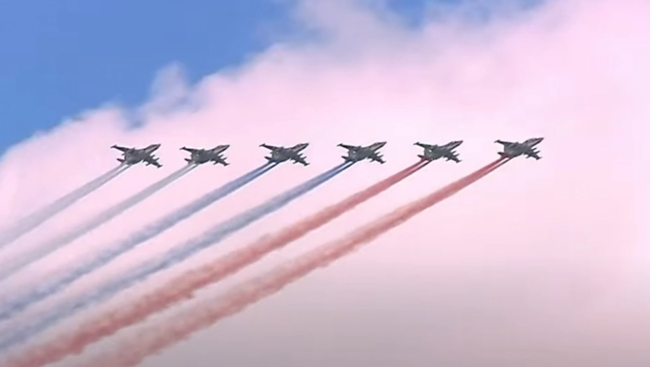 Vojna parada povodom Dana pobede povodom 80. godišnjice poraza nacističke Nemačke završena je uzletom ruskih akrobatskih timova i ratnih aviona u nebo iznad Moskve.