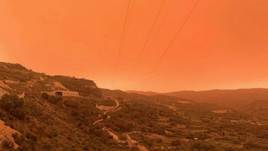 APOKALIPTIČNI PRIZORI IZ GRČKE! Na Kritu kao u SAHARI, pesak zasuo čuveno ostrvo, nebo potpuno promenilo boju (VIDEO, FOTO)