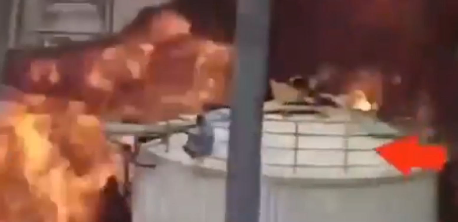 Zaposleni uspeva da stigne do susednog rezervoara dok put iza njega gutaju plamenovi. Zatim se vide oblaci crnog dima koji se uzdižu visoko u nebo.