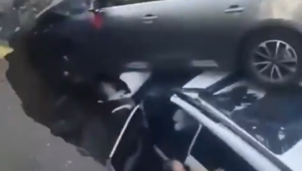 RUPA NASRED PUTA ''PROGUTALA'' DVA AUTOMOBILA! Putnici jedva uspeli da se izvuku iz vozila (VIDEO)