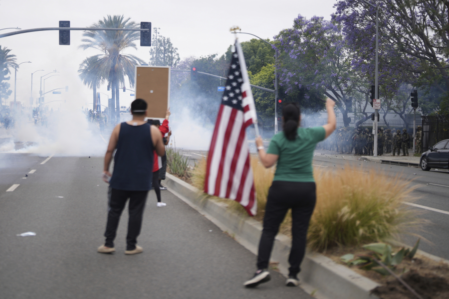 Na ulice Los Anđelesa izašlo je oko 2.000 pripadnika Nacionalne garde. Demonstranti su palili kontejnere, blokirali saobraćaj kolima za kupovinu i zapalili automobil u Komptonu. Najnapetije je bilo u Paramauntu, gde su se sukobili sa federalnim agentima, a među demonstrantima su se mogle videti i meksičke zastave.