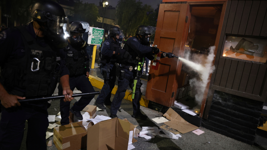 Demonstranti su se, ispred pritvorskog centra u Los Anđelesu, sukobili sa agentima Nacionalne garde Kalifornije, Imigracionog odeljenja i Ministarstva unutrašnje bezbednosti, u poslednjoj seriji protesta protiv imigracionih racija koje su zahvatile Kaliforniju tokom vikenda, prenosi Tanjug.