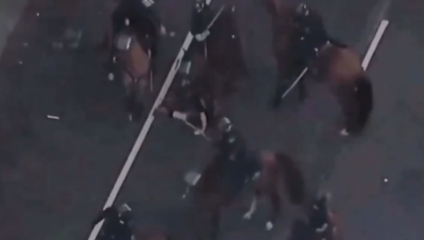 POLICIJA U DEMOKRATSKOJ AMERICI BLOKADERE GAZI KONJIMA Tuku ih, nema tolerisanja! (VIDEO)
