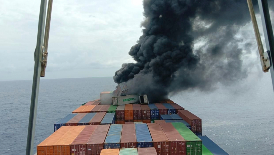 Fotografije i snimci koje je indijska obalska straža podelila na platformi Iks pokazuju gust oblak crnog dima koji se diže sa broda i nekoliko otvorenih kontejnera.