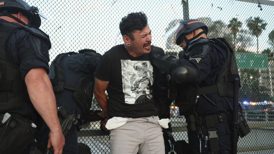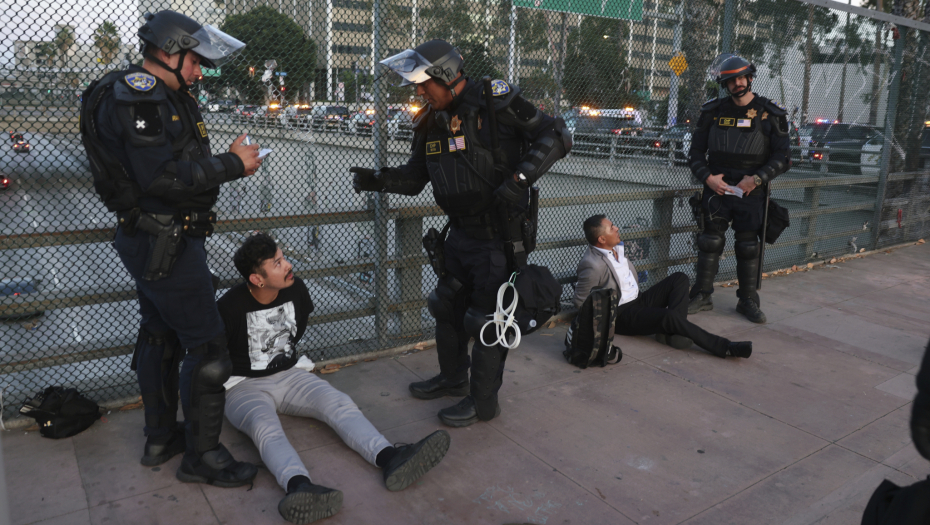 Tokom protesta u subotu u Los Anđelesu , policija je, kako prenosi ruska agencija masovno koristila gumene metke i suzavac.