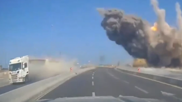 RAKETA UDARILA U AUTOPUT, IZBEGLI SMRT ZA DLAKU! Kamera uhvatila trenutak iranskog napada! (VIDEO)