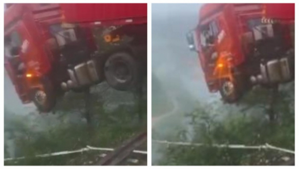 Jedna od najupečatljivijih scena stiže sa autoputa ka gradu Rongjiang, gde je klizište srušilo deo vijadukta – a kamion je ostao da visi sa ivice uništenog mosta, dok je prestravljeni vozač gledao pravo u ambis! Ovaj prizor zgrozio je i rastužio milione širom sveta.