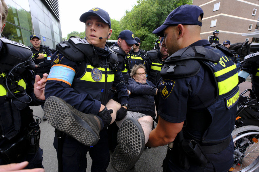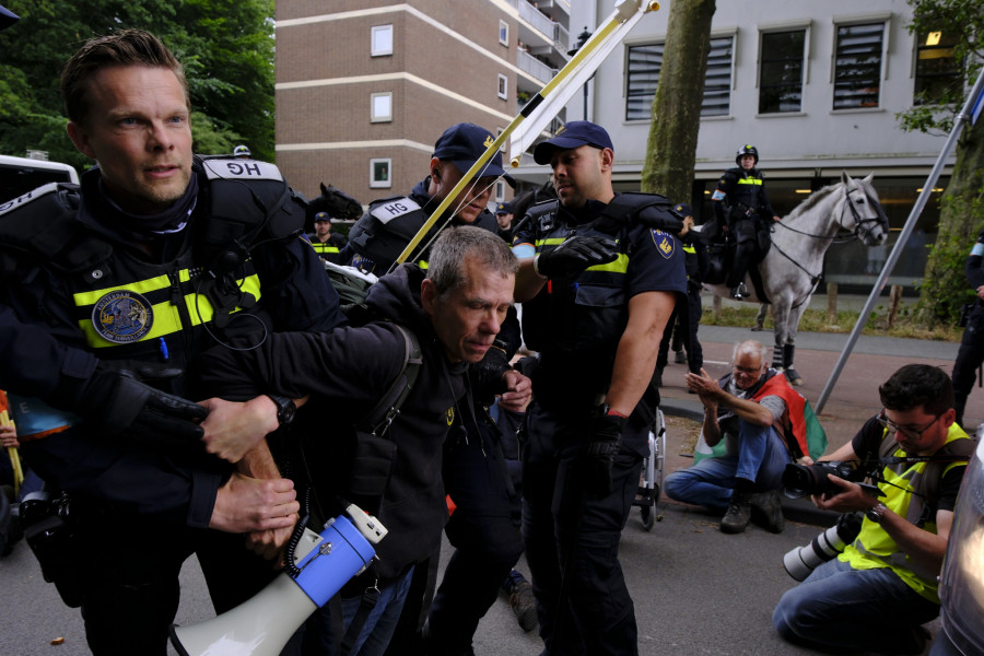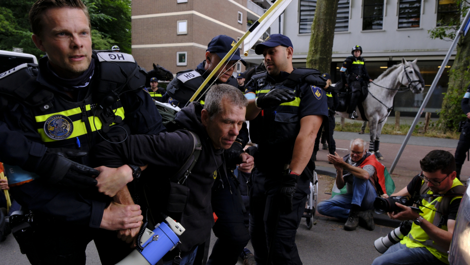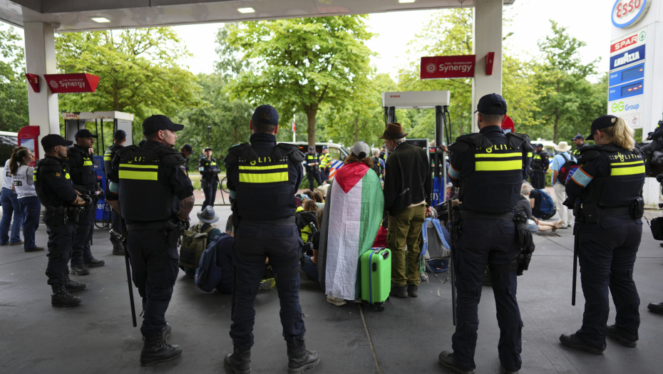 Cilj im je bio da ukažu na „genocidne akcije Izraela u Gazi“ i finansiranje fosilnih goriva. Međutim, policijski kordoni i konjica sprečili su ih da uđu na put.