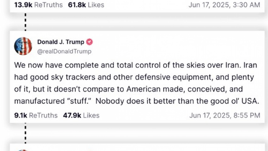Tramp je kroz seriju od 12 objava pokazao kako moderni lideri koriste društvene mreže kao diplomatsko oružje – za pretnje, pohvale i sklapanje mira. Ovaj „digitalni dnevnik“ 12-dnevnog rata ostaće verovatno presedan u istoriji online komunikacije velikih lidera tokom stvarnih oružanih sukoba.