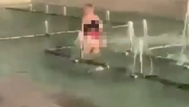 POLUGOLA ŽENA IZAZVALA HAOS U CENTRU GRADA Uznemiravala prolaznike u fontani(VIDEO)
