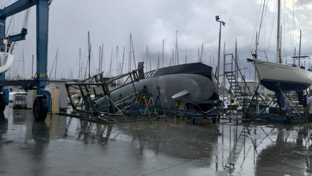 Trajekt "Petar Hektorović" je u splitskoj luci, usled jakog nevremena i vetra, udario u dva broda, od kojih je jedan potonuo.