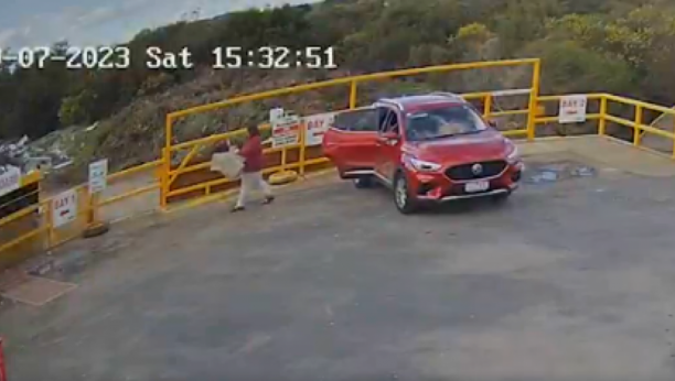Snimak prikazuje Paterson kako istovara ono što izgleda kao gomila kartona i jedna kesa za smeće na stanici za preradu otpada i deponiji u Kunvari u 15:30 tog popodneva. Zatim se udaljila u svom crvenom MG automobilu.
