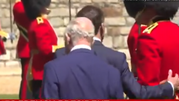 Na snimku se vidi kako Makron razgovara sa članovima Kraljeve garde dok kralj Čarls hoda nekoliko koraka iza - detalj koji nisu propustili pažljivi kraljevski posmatrači.