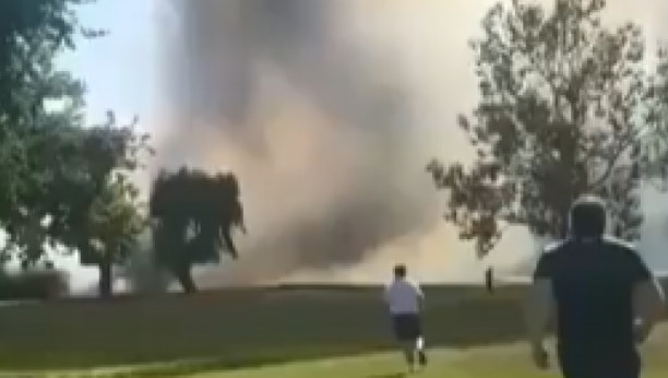 Video snimci sa golf terena prikazuju grupu šokiranih golfera kako trče ka stubu dima.