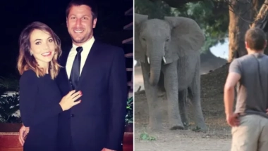 Slon ga je nabio na kljove i odvukao u žbunje, gde su mu se pridružili i ostali slonovi iz krda.