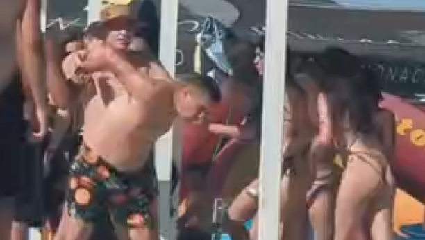 Na snimku se vidi kako se devojke u kupaćim kostimima tuku, čupaju jedna drugu za kosu i bacaju u pesak.