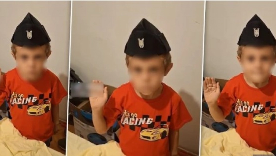 Na videu koji kruži TikTok-om jasno se čuje i vidi kako dečak, star najviše pet godina, podiže ruku u karakterističan pozdrav i izgovara reči „Za dom spremni“.