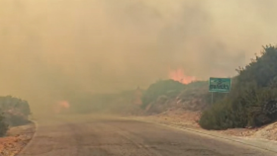 Na dramatičnim snimcima vidi se kako se plamen približava kućama, dok gusti crni dim zaklanja sunce. Protivpožarni avioni nadleću pogođeno područje, pomažući vatrogascima na zemlji u pokušaju da što pre obuzdaju vatru.