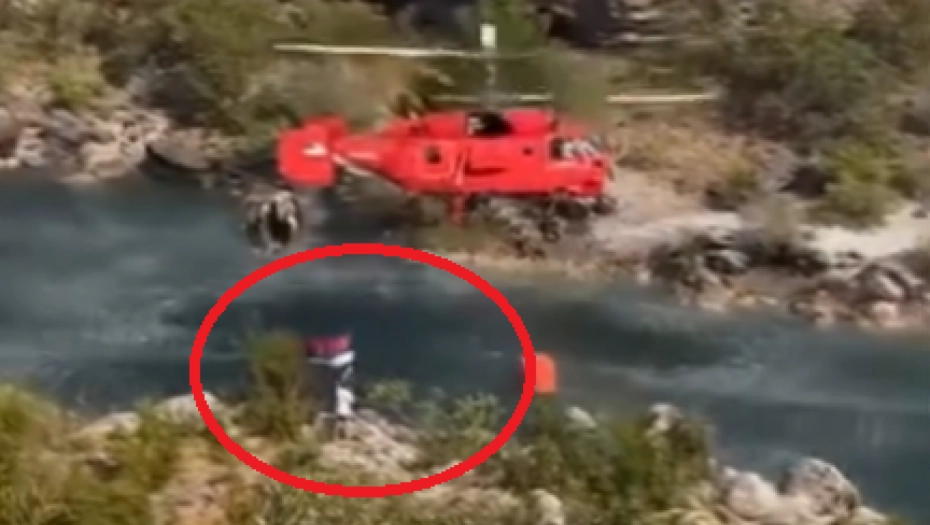 TROBOJKOM DOČEKAO SRPSKI HELIKOPTER Dirljive scene na obali Morače (FOTO/VIDEO)