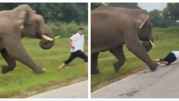 Kako se može videti na snimcima koji su objavljeni na društvenim mrežama, kada je velika životinja krenula za njim, muškarac se spotakao i pao, a slon ga je zgazio.