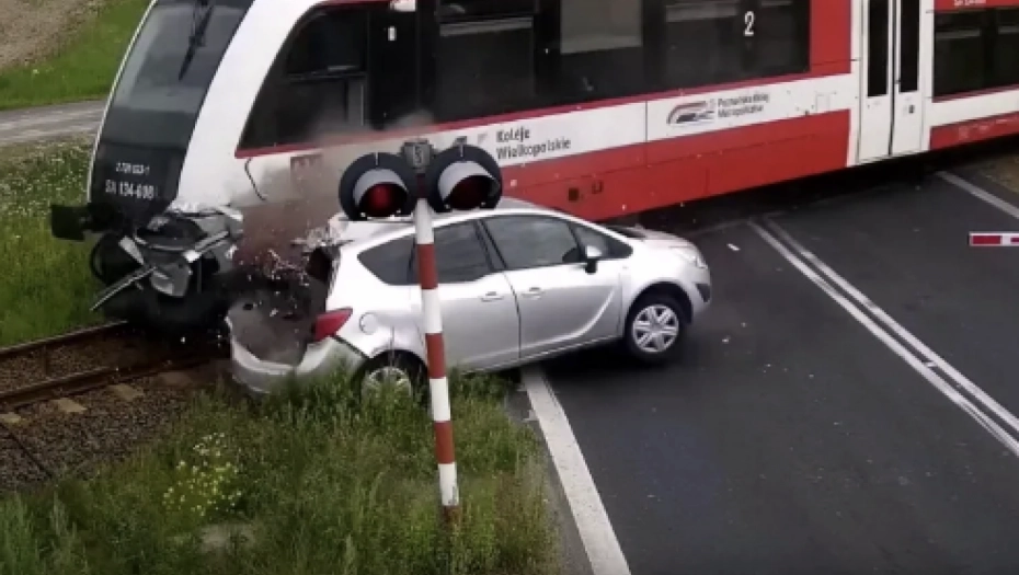 Snimci sigurnosnih kamera prikazuju kako se barijere spuštaju i zatvaraju prelaz, dok se automobil ne zaustavlja već udara u rampu, lomi je i razbija vetrobransko staklo. Umesto da nastavi, vozilo ostaje na pruzi, direktno na putu nadolazećeg voza. Samo nekoliko trenutaka kasnije, putnički voz koji je saobraćao na relaciji Poznanj–Volštin silovito udara u zadnji deo automobila.