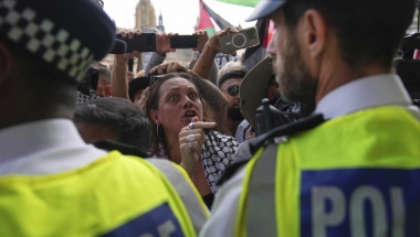 Londonska policija je saopštila da su propalestinski demonstranti prošli pored kontrademonstranata i da su policajci raspoređeni da razdvoje dve grupe.