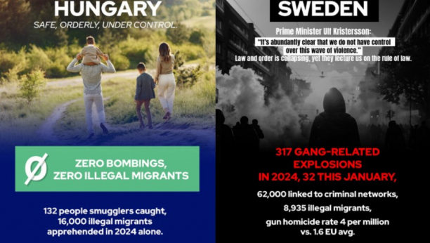 Švedski premijer je priznao: ‘Potpuno je jasno da nemamo kontrolu nad ovim talasom nasilja.’ Zakon i red se urušavaju, a ipak držimo lekcije drugim zemljama o vladavini prava. Ovaj haos ne sme postati budućnost Evrope, naši građani zaslužuju bolje“, napisao je Orban na platformi X.