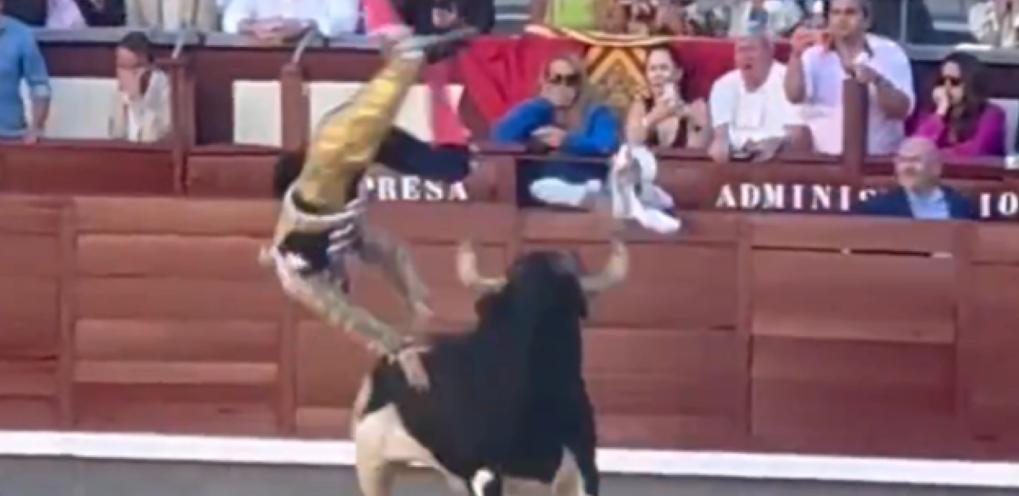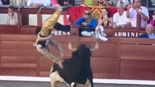 Na zastrašujućem snimku koji je zabeležila publika, vidi se kako ga bik rogovima diže u vazduh.