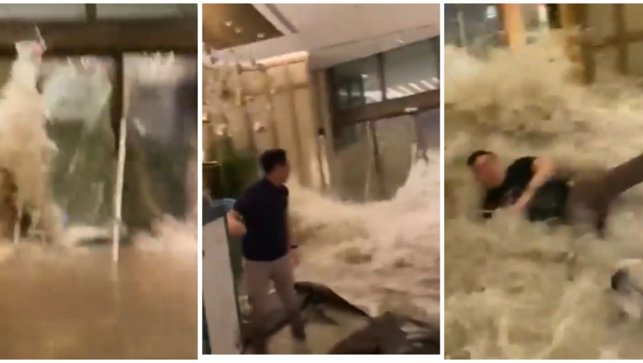 ZASTRAŠUJUĆI SNIMAK IZ KINE Ogroman vodeni talas probija u hotel, ljudi vrište dok ih jaka struja obara i nosi (VIDEO)