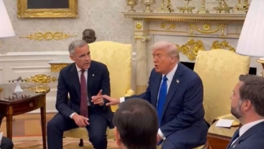 Karni je počeo da govori: „...i najvažnija stvar...", na šta ga je Tramp prekinuo rekavši: „spajanje Kanade i Sjedinjenih Američkih Država", što je izazvalo smeh u prostoriji, prenosi En-Bi-Si njuz. „Nisam na to mislio", odgovorio je Karni na Trampovu opasku.